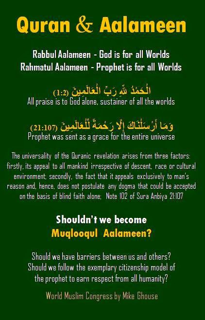 Aalameen; Rabbul, Rahmatul and Muqlooqul