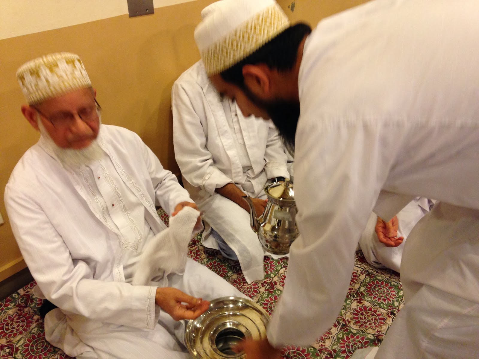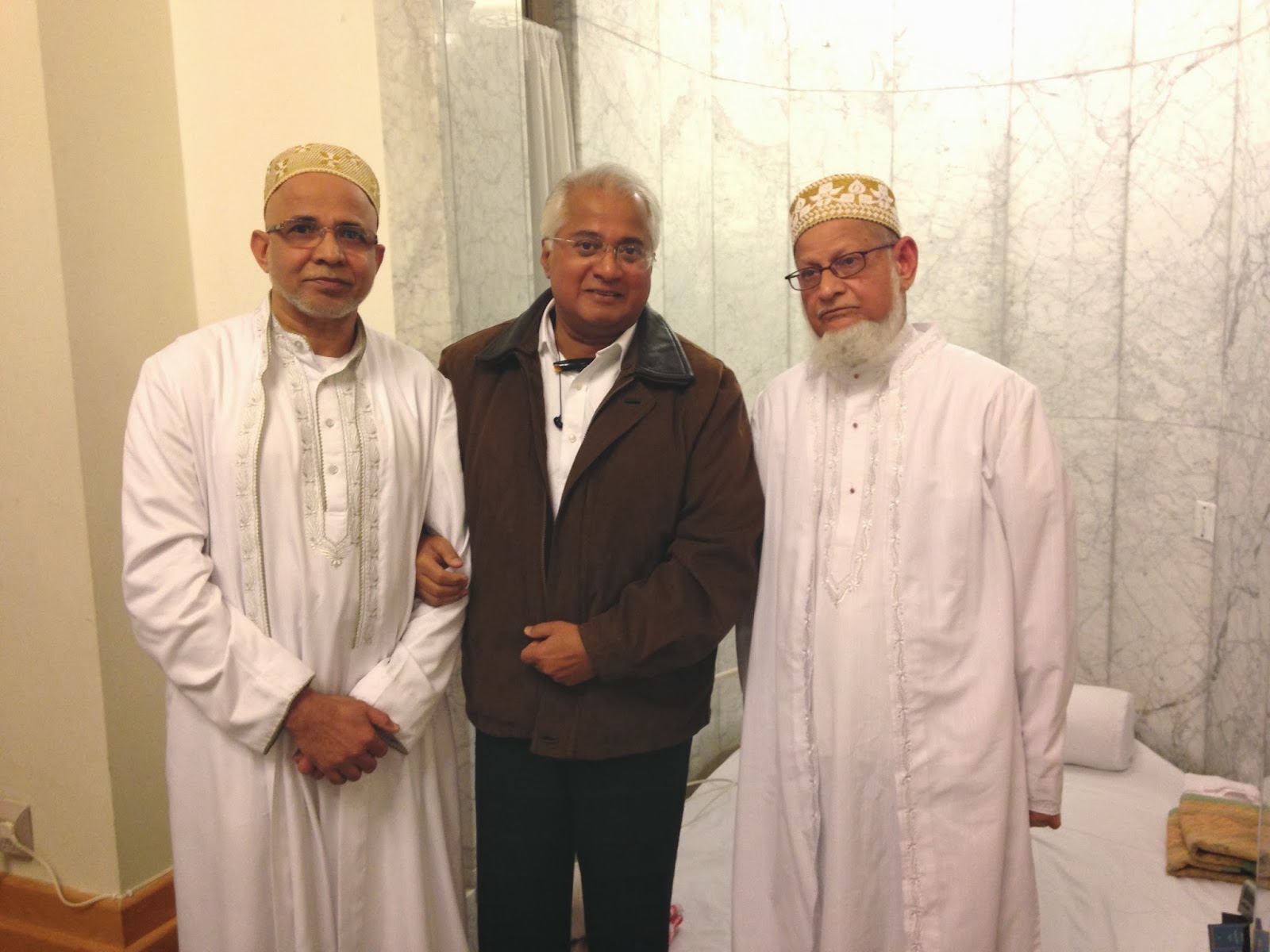 In the picture are Tayyab Kundawala, a prominent Indian community leader who walked toe to toe with me during the 9/11 crisis, he was the President of India Association at that time. He is currently involved with the Mahatma Gandhi statue placement in Dallas. The other person in picture is the imam (Aamil Saheb) in charge as the resident Aamil Saheb is in Mumbai to join in the funeral services of the Syedna Burhanuddin.