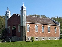 A bigger mosque on the prairie. Visitors to the history park in Edmonton, Canada often pause in front of a small, red brick building wondering about its identity. Its long and narrow rectangular shape and onion-like domes suggest that it might be an Eastern Orthodox church. While the minarets rising from either side of the front entrance and crescent moons atop the domes betray its Middle Eastern roots. Inside, there are no pews, only 70-year-old carpets, faded and worn thin at spots. It is Al-Rashid, Canada’s oldest mosque.
