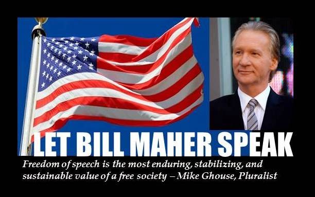 Bill Maher should not be stopped from speaking either; I will equally defend his right to free speech. I am speaking up in particular because the people opposing his freedom are Muslims, fellow members of my faith.