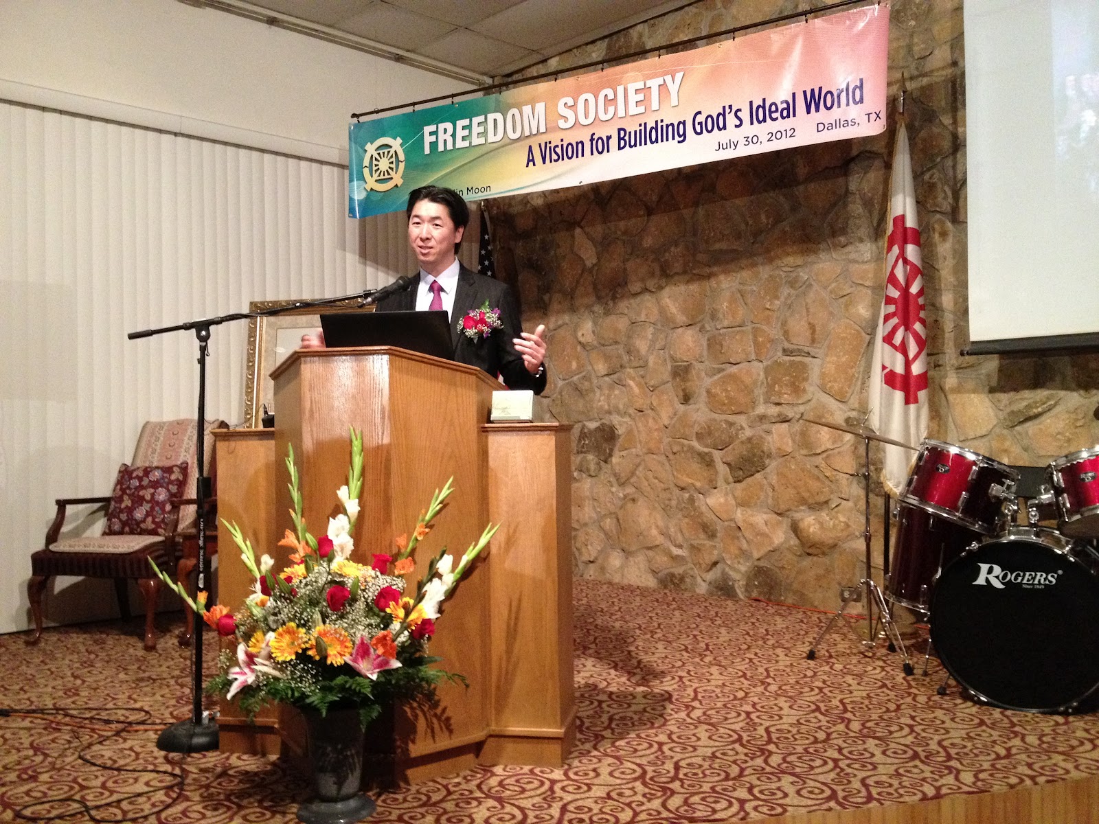 Today, Rev. Kook Jin Moon made it to Dallas, a Harvardian heading his father’s business, an inventor himself and a powerful speaker.  He is visiting several Cities in the United States and other countries on a mission about creating  freedom societies, similar to mine building cohesive societies, but his emanates from theology of Rev. Sun Myung Moon, his father.
