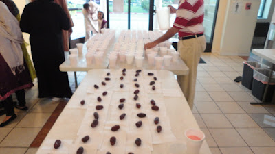 At the call of Adhan (prayer call), normally every one breaks the fast with a bite of a date, but here today, there were some who waited for the call to finish!  Each Masjid has a different practice; of leading to the moment on his or her own or follow the tradition, as is done at Madinah Masjid in Carrollton, every second of the last few minutes are guided by the Imam there with supplications.